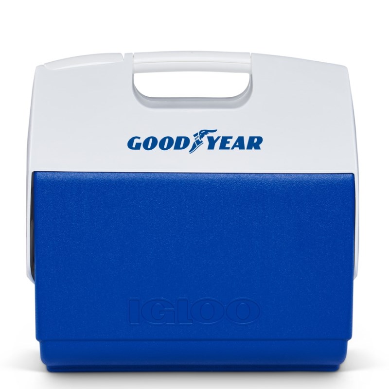 The Igloo Playmate Elite 16 Qt Cooler is a versatile and durable cooler designed to keep your items cold for extended periods. It features a push-button lid for easy one-handed opening, a secure lid to prevent spills, and a sturdy design ideal for various outdoor activities. The cooler has a 16-quart capacity, holding up to 30 cans, making it perfect for picnics, camping trips, and sporting events. With its iconic tent-top design and comfortable carrying handle, this cooler is both functional and stylish and its available in Blue. Branded with the Goodyear Corporate Logo. Minimum order quantity is 6 pieces.