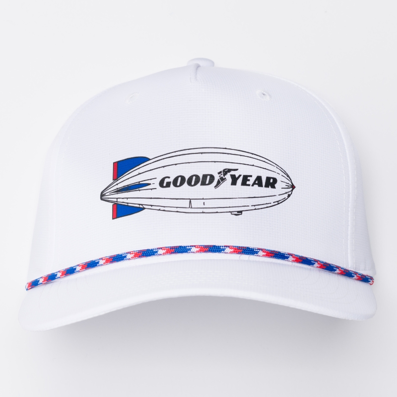 The Enterprise Blimp Rope Hat blends classic athletic style with modern performance. This five-panel hat features UV protection, a modified flat bill with braided rope accent, quick-dry moisture-wicking fabric, and an adjustable snapback closure, perfect for Goodyear airship enthusiasts and everyday wear.