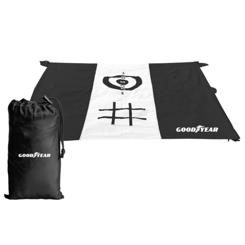 Enjoy fun in the sun with this Sand Free Game Beach Blanket, preprinted with tic-tac-toe and target games and complete with included sand bags for interactive play. Made from durable nylon fabric, it easily shakes clean of sand and packs neatly into a matching carrying bag along with the stakes and game pieces. Available in black, the blanket measures 84″ x 75″, with 4″ x 4″ game bags and a compact 9″ x 5.5″ packed size.