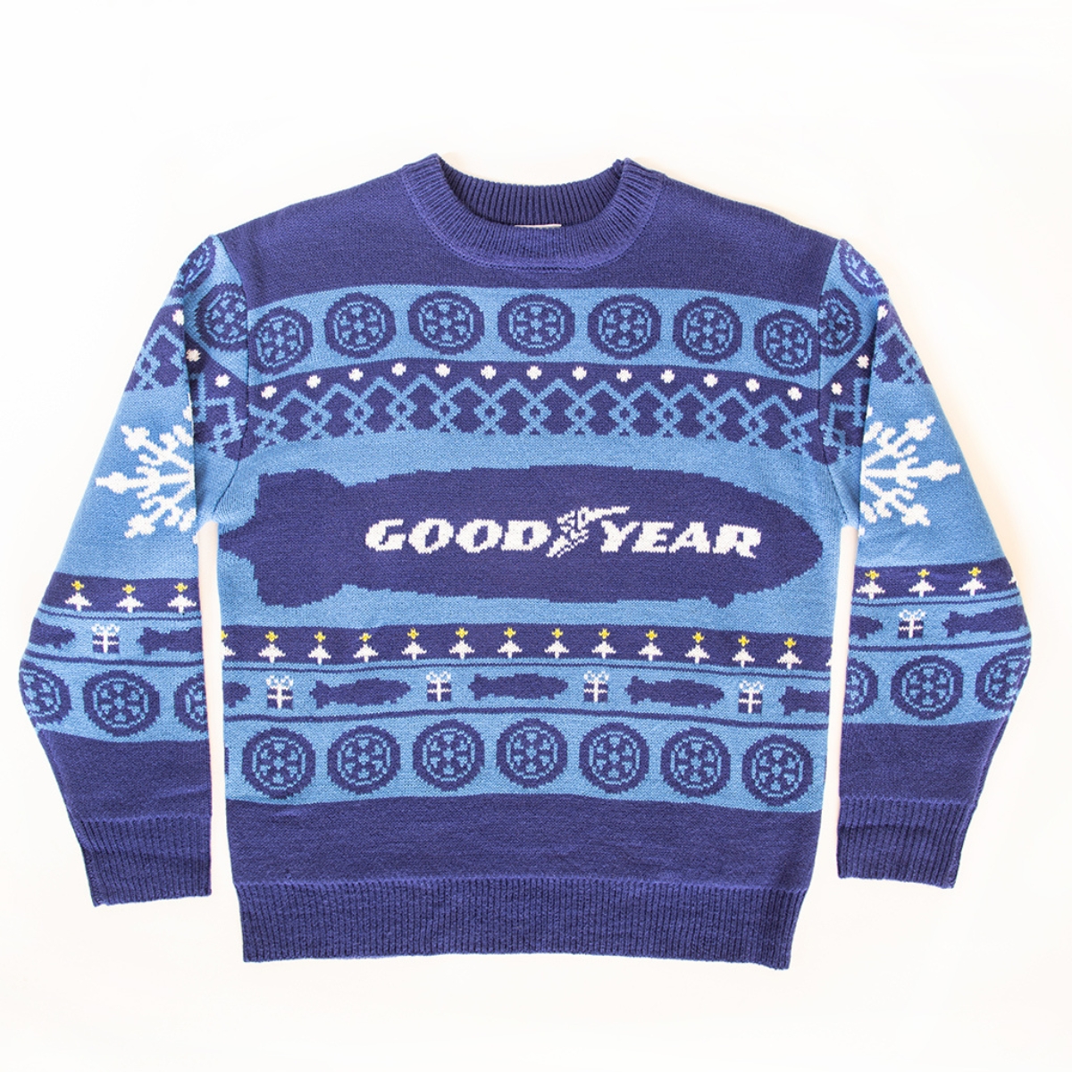 Bring festive cheer and Goodyear pride together with the Goodyear Blimp Holiday Sweater. This premium heavyweight knit sweater combines warmth, comfort, and timeless style in one cozy package. Crafted from 7-gauge acrylic jacquard knit, it’s designed to keep you warm all season long while showcasing the legendary Goodyear Blimp in a fun holiday design. Whether you’re heading to the office holiday party or just keeping cozy at home, this sweater is the perfect way to show your Goodyear spirit.