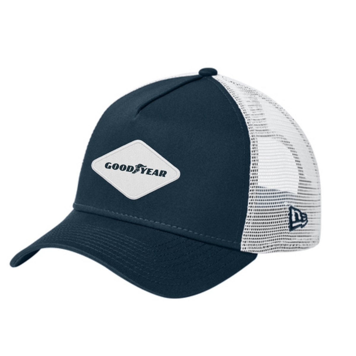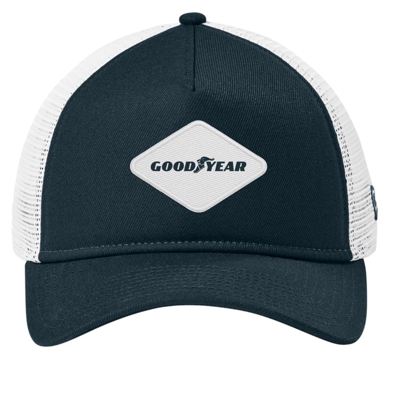 Show off your style and brand pride with the Goodyear x New Era Snapback Trucker Hat. This 5-panel cap combines classic design with modern comfort, featuring 100% cotton twill front panels and bill for a soft, durable feel, and breathable 100% polyester mesh mid and back panels for superior ventilation. The high-profile, structured crown gives a bold, clean look, while the trend-right 7-position snapback closure ensures a customizable fit.